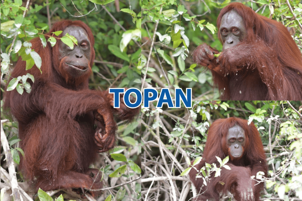 Topan, the graceful female orangutan who was often seen at the feeding platform alongside her companion Mema, is now showing a new side of herself. She has begun exploring other areas of the pre-release island, slowly growing more confident and familiar with her surroundings and the other orangutans who share the habitat.
